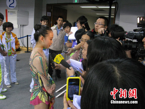第一次參加亞運(yùn)會(huì)的孫妍在在個(gè)人全能項(xiàng)目上也有上佳的表現(xiàn),以第4名的成績(jī)?nèi)雵?6日的決賽!拔蚁M梢阅玫揭幻丢(jiǎng)牌,不能讓自己再失望了!彼f(shuō)。