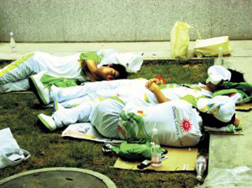 對(duì)一些室外志愿者來(lái)說(shuō),一天中需要忍受的還包括草坪上吃飯、睡覺(jué)……