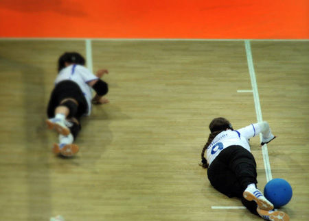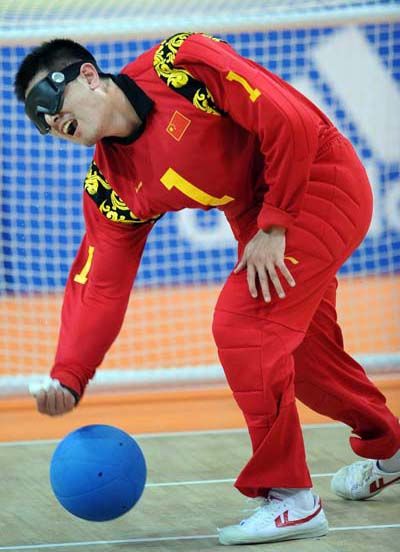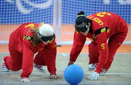 盲人門球運(yùn)動(dòng)是根據(jù)盲人視力障礙特點(diǎn)而專門設(shè)計(jì)的一項(xiàng)集體球類項(xiàng)目,它需要運(yùn)動(dòng)員根據(jù)觸覺來確定自己在場(chǎng)上的位置、方向;根據(jù)聽覺來判斷球的方向、速度,從而迅速做出反應(yīng)。這項(xiàng)運(yùn)動(dòng)的形式適合于盲人視覺功能障礙的局限,集安全性、競(jìng)技性、觀賞性于一體,既突出運(yùn)動(dòng)員個(gè)人技術(shù)又強(qiáng)調(diào)團(tuán)隊(duì)配合。有人作了這樣的比喻:“盲人門球運(yùn)動(dòng)是一項(xiàng)球似籃球,球門似足球,而擲球動(dòng)作像保齡球的運(yùn)動(dòng)。” (來源: 亞殘運(yùn)會(huì)官方網(wǎng)站)