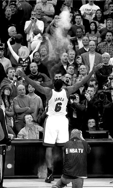 速貸球館曾是詹姆斯的天下,他可以在這里肆意地撒鎂粉,也可以瘋狂地咆哮,球迷們送給他的永遠是歡呼。昨天,他在這里從全民寵兒淪為全民公敵。盡管每次觸球都要忍受著現(xiàn)場兩萬多名騎士球迷震天的噓聲,但“小皇帝”咬著牙和這幫人對著干,他打出了38分8次助攻5個籃板的賽季最佳表現(xiàn),率領(lǐng)熱火118比90大勝舊主。