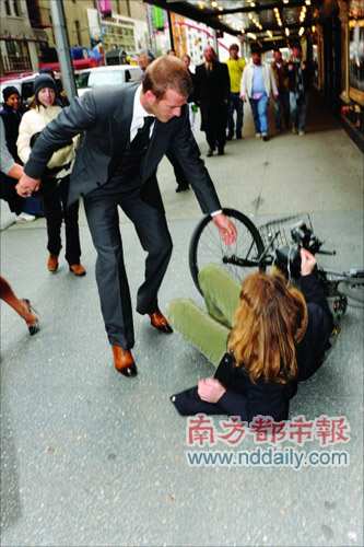 在阿湯哥位于曼哈頓的公寓外,面對狗仔鏡頭的阿湯哥意氣風(fēng)發(fā),倒是貝克漢姆有些靦腆,帶著辣妹和三個兒子的他,處處顯示出一個成熟男人的紳士風(fēng)范。有趣的是,一名狗仔對準小貝拍照的時候被路邊的自行車絆倒,右手牽著妻子的貝克漢姆還極其紳士地伸出另一只手上前將她扶起來。