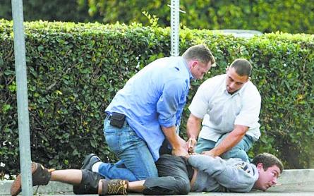 記者顯然不是保鏢的對(duì)手,貝克漢姆的兩名保鏢都曾經(jīng)是海軍陸戰(zhàn)隊(duì)隊(duì)員。他們很快就將記者制服,并專業(yè)地將記者雙手用手銬拷起來壓在地上。直到警察趕到,記者仍然被反拷在地上。記者的相機(jī)被一名保鏢直接扔到了垃圾桶內(nèi)。警察趕到后,叫來了救護(hù)車,不過當(dāng)事的3人都拒絕接受治療。隨后3人被帶到警察局,不過貝克漢姆已經(jīng)通知律師處理此事! 我們已經(jīng)將事情寫了報(bào)告,目前還沒有人遭扣留或起訴。如果需要,我們會(huì)繼續(xù)調(diào)查”,比佛歷山警察局發(fā)言人表示。據(jù)悉,記者在當(dāng)時(shí)拍攝的畫面已經(jīng)交給警方。