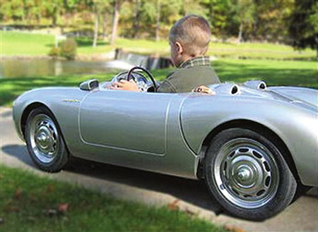 如今,9歲的布魯克林已經(jīng)擁有了自己的第2輛豪車——超小精致版保時(shí)捷跑車,這輛車是保時(shí)捷手工制造的,停車場(chǎng)還為小跑車專設(shè)停車位?蓜e小瞧了這輛超小精致版保時(shí)捷跑車,那可是真刀真槍喝油的豪華跑車!這輛保時(shí)捷價(jià)值近5萬(wàn)鎊,柴油驅(qū)動(dòng)。小車雖小,但與真正的汽車沒有什么區(qū)別,不過(guò)小布魯克林不能用這輛豪華玩具車載他的小女朋友去兜風(fēng),因?yàn)槭菃巫穆铩?