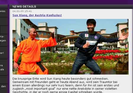 中新網(wǎng)3月5日電 在昨天進(jìn)行的奧地利杯賽中,維也納隊(duì)點(diǎn)球擊敗格拉茨風(fēng)暴,昂首晉級半決賽。而居功至偉的孫祥,也登上了球隊(duì)的官網(wǎng)。官網(wǎng)以《孫祥:奧地利的孔夫子》為題,盛贊了這位隊(duì)員的表現(xiàn)。
