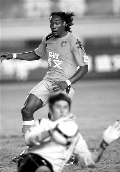 長春亞泰的作風(fēng)令新帥非常欣慰。圖為青島隊(duì)球員布朗在門前包抄。
