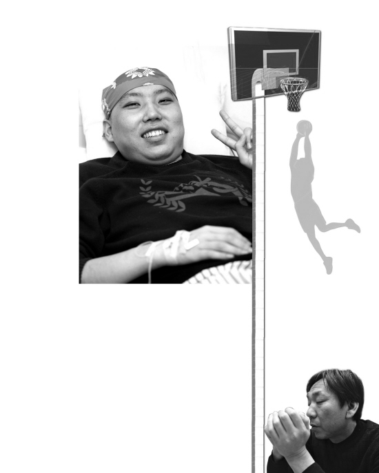 遼寧青年男籃隊(duì)員、國青隊(duì)隊(duì)長王屾在今年5月份不幸患上了胸腺瘤,本來很有希望升上遼寧一隊(duì)的他不得不暫別球場(chǎng)接受治療。雖然王屾患上的腫瘤屬于良性,可以治愈,但病情在10月份突然急劇惡化,被診斷出腫瘤已經(jīng)轉(zhuǎn)移到骨髓,病變成了白血病,必須要接受骨髓移植才能有生存機(jī)會(huì)。這顆籃球的希望之星遠(yuǎn)離了自己鐘愛的籃球場(chǎng),正躺在醫(yī)大一院的病床上接受化療。