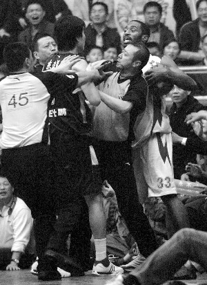 下半時(shí),就在新世紀(jì)追到72平之際,哈里斯在防守時(shí)大腿撞傷,被宋康明替換下場(chǎng),在第三節(jié)余下的時(shí)間里,新世紀(jì)只能以全華班出戰(zhàn)。拼到第四節(jié),新世紀(jì)將比分追到86∶87。此時(shí),哈里斯重新披掛。但傷病明顯影響了他的發(fā)揮,還差點(diǎn)與王仕鵬老拳相向。