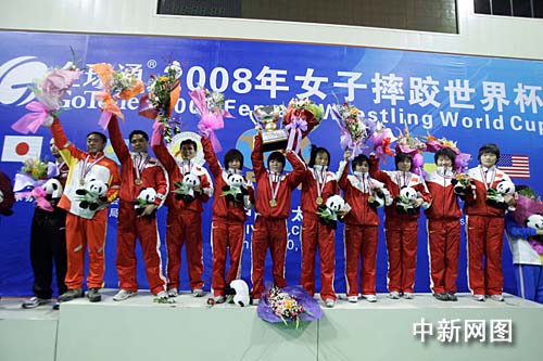 中新網(wǎng)太原1月20日電(張?jiān)?二00八年“全球通”女子摔跤世界杯賽經(jīng)過(guò)兩天激戰(zhàn),20日晚在山西省太原市濱河體育中心落下戰(zhàn)幕。上屆冠軍中國(guó)隊(duì)最終戰(zhàn)勝美國(guó)隊(duì),再次取得比賽的冠軍,美國(guó)隊(duì)獲得亞軍,第三名由日本隊(duì)獲得。
