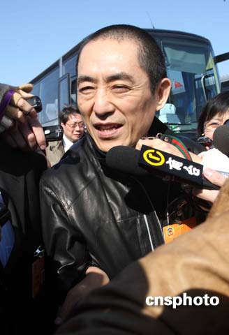 前來出席十一屆全國政協(xié)一次會議的張藝謀甫一下車,就被眼尖的記者發(fā)現(xiàn),他的身邊迅速形成了一個巨大的包圍圈。面對記者圍堵,張藝謀起初一言不發(fā),后見“形勢不妙”,便停下腳步。