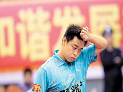昨天下午,王皓第二個(gè)出場(chǎng),對(duì)陣四川隊(duì)郝帥。這場(chǎng)比賽也成為王皓在“醉酒門”發(fā)生后,首次代表八一隊(duì)參賽,因此這場(chǎng)比賽也毫無(wú)爭(zhēng)議的成為了本站比賽的焦點(diǎn)之戰(zhàn)。比賽開始前全場(chǎng)觀眾興奮地大叫“王皓!王皓!”,但王皓從休息區(qū)走出來(lái)時(shí)表情卻十分木然,一個(gè)人低著頭慢慢走入場(chǎng)內(nèi),從表情上我們很容易感受到王皓承受了很大的壓力,比賽中,王皓一直面無(wú)表情,雖然時(shí)不時(shí)的還能打出一兩個(gè)好球,并且每打出一個(gè)好球都能得到全場(chǎng)雷鳴般的掌聲。不過(guò)王皓的表現(xiàn)始終心不在焉,表情比較呆滯,最后1:3失利。