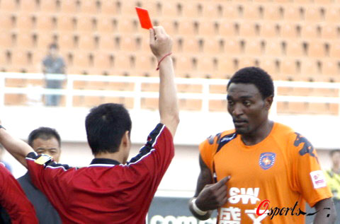 此時(shí),正在青島隊(duì)后場(chǎng)的外援保羅尤如吃錯(cuò)藥一般,儼然武圣關(guān)羽“靈魂附體”,從后場(chǎng)狂奔50米沖到事發(fā)地點(diǎn),分別與遼寧隊(duì)幾名本土球員以及外援格里菲斯發(fā)生爭執(zhí),甚至還施展鎖喉大法,雙手卡住格里菲斯的咽喉,頗具千里走單騎,過五關(guān)斬六將之風(fēng)。主裁當(dāng)即將這位勇若張飛、豪比關(guān)羽的黑面大俠請(qǐng)出了綠茵場(chǎng)。