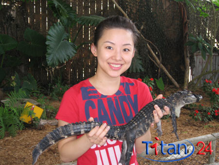 潘曉婷在美國參加比賽間隙在動物園游玩。
