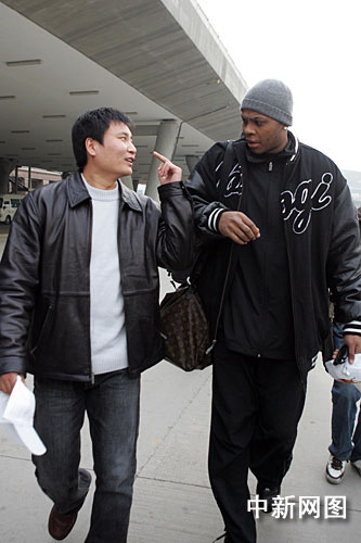 12日下午,前NBA休斯敦火箭隊球星邦奇•威爾斯飛抵太原。作 者:張云