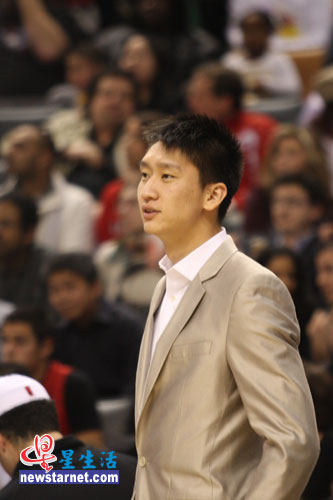 身著西裝的孫悅更多的時(shí)間只是靜靜地坐在場(chǎng)邊觀戰(zhàn)。只是在比賽暫停期間,他才起身與隊(duì)員一起傾聽主教練對(duì)比賽的部署。在中國(guó)孫悅是一個(gè)很有實(shí)力的球員,但在NBA卻不得不從板凳上站起。