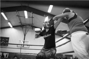 對手確實(shí)沒那么強(qiáng)大。她沒坐過牢,只是個(gè)從明尼蘇達(dá)州坐了8小時(shí)長途車趕到這里的普通人,她抽煙,這是她練習(xí)拳擊10年來的第一場比賽。謝莉從鈴響的第一秒就開始猛擊,第二回合對手被強(qiáng)制數(shù)八,第三回合,謝莉左手推開對方的拳套,用右手猛擊,這次是對方在發(fā)抖。再過了一會(huì),裁判舉起了謝莉的手。
