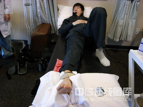 2008年12月13日,手術(shù)后的劉翔在病床上。