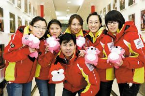 在昨天的網(wǎng)絡(luò)聊天現(xiàn)場(chǎng),這群活潑的姑娘對(duì)著話筒唱出對(duì)隊(duì)長(zhǎng)王冰玉的表白:“胖冰胖冰我愛你,就像老鼠愛大米……不對(duì),就像大米愛老鼠……胖冰是1984年生的,屬老鼠!蓖醣駥(duì)隊(duì)友的熱情弄得有些措手不及,漲紅著臉說(shuō)“我也愛你們”。