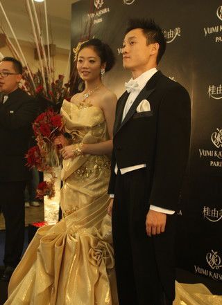 去年初冬,新詞匯“炒婚”橫空出世,而這一新詞的始作俑者便是北京奧運(yùn)會(huì)體操“全能王”楊威和他的妻子、同為體操運(yùn)動(dòng)員的楊云!巴啤贝蠡,最吸引人眼球的,莫過于坊間盛傳價(jià)值三千萬的“黃金婚紗”。在中午十二時(shí)的婚宴上,楊云終于身穿這套“黃金婚紗”現(xiàn)身,使原本就俊美的新娘更加楚楚動(dòng)人。