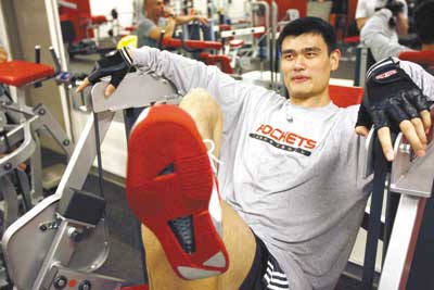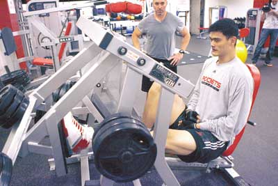 隨著傷勢(shì)逐漸好轉(zhuǎn),姚明已開始進(jìn)行恢復(fù)性訓(xùn)練。目前姚明每天都會(huì)將很大精力投入在力量器械上,從而保證缺陣期間的各項(xiàng)力量指數(shù)不至于下降,而腿部力量訓(xùn)練則是姚明訓(xùn)練中的重點(diǎn)。