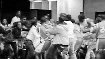 據(jù)《今日美國》報(bào)道,這起事件發(fā)生在蒙哥馬利市的阿拉巴馬州立大學(xué)籃球場(chǎng)內(nèi),當(dāng)時(shí)進(jìn)行比賽的雙方是卡文中學(xué)和山谷中學(xué)籃球隊(duì)。在第四節(jié)比賽僅剩6分23秒時(shí),山谷中學(xué)的恩里克在一次防守時(shí)推搡對(duì)方中鋒約翰遜犯規(guī),約翰遜立即回以一記老拳。見勢(shì)不妙的兩隊(duì)替補(bǔ)隊(duì)員也沖上場(chǎng)來,場(chǎng)面隨即變得不可收拾。