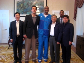 科比感謝張總領(lǐng)事邀請他來官邸作客,并愉快地憶及去年8月赴京參加北京奧運(yùn)會的情景?票缺硎,親身參加北京奧運(yùn)會是他巨大的榮耀。在華期間,他初步領(lǐng)略到了絢麗多彩的中國文化和快速發(fā)展的中國社會,充分感受到了中國人民的友好情誼。他熱愛中國,希望早日重訪中國,進(jìn)一步加深對中國的了解。同時,愿發(fā)揮自身影響力,為促進(jìn)美中兩國青年間的相互溝通與交流,特別是為兩國弱勢兒童的福祉做些實(shí)事。