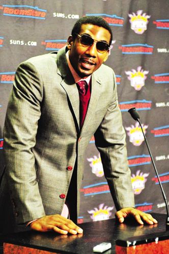 斯塔德邁爾戴著太陽鏡出現(xiàn)在太陽和奇才比賽的現(xiàn)場,這是他上個月接受眼角膜撕裂手術(shù)后首次在公開場合現(xiàn)身!靶“酝酢北硎緩南沦惣鹃_始他會在比賽中戴上護(hù)目鏡,因?yàn)樗幌胱屟蹅麃碛绊懽约涸诒荣愔械谋憩F(xiàn)。