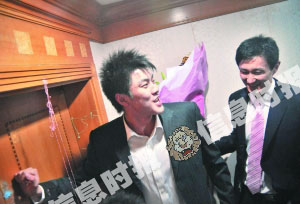 信息時(shí)報(bào)訊 (記者 馮愛軍) 宏遠(yuǎn)隊(duì)大將杜鋒昨天完成了人生的一件大事——在東莞大擺筵席迎娶馬晨菲。而在昨天凌晨,這對新人還入鄉(xiāng)隨俗進(jìn)行了東莞婚嫁中的搶新娘儀式。杜鋒雖然叫上了所有宏遠(yuǎn)隊(duì)的兄弟幫忙,可還是差點(diǎn)被“找紅鞋”的環(huán)節(jié)難倒。幸好后來得到“貴人”相助,杜鋒才能抱得美人歸。