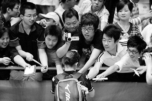 誰(shuí)是杭州本周最熱明星?答案自然非福原愛莫屬。背著掛滿維尼熊和米老鼠掛件的運(yùn)動(dòng)包,戴著米奇的紀(jì)念版手表,穿著卡通圖案的襪子,喜歡吃鴨舌,說最喜歡杭州、最想去的是西湖。這就是“瓷娃娃”福原愛,一個(gè)已經(jīng)21歲,卻依然沒有長(zhǎng)大的孩子。