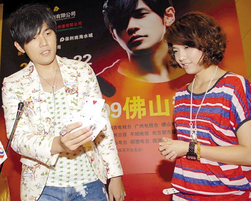 昨日下午,周杰倫以“雪碧”品牌代言人身份,來到廣州新長隆酒店舉行千人大型歌迷見面會(huì),剛剛拍完電影《刺陵》的周杰倫似乎是在沙漠地帶待得太久,不僅主動(dòng)要求記者提些“奇怪的問題”,而且有問必答,還在現(xiàn)場(chǎng)分別為歌迷與記者連玩了數(shù)場(chǎng)撲克魔術(shù)。他十分肯定地承認(rèn)自己玩魔術(shù)的確有“喧賓奪主”的嫌疑,但仍自夸“魔術(shù)玩得太好,我還想明年準(zhǔn)備做一場(chǎng)大型魔術(shù)主題演唱會(huì)”。