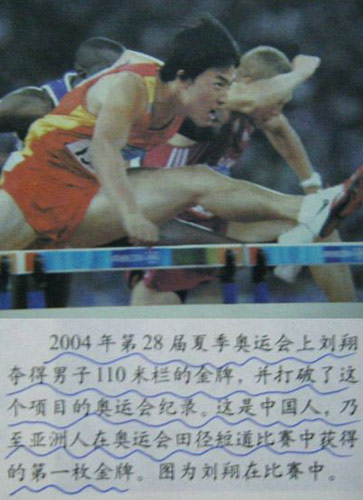 北京時間7月5日消息,在華東師范大學(xué)最新出版的初中版《中國歷史》教科書中,中國飛人劉翔與王軍霞一同入選。這也是2005年之后,劉翔雅典奧運會奪冠的事跡再度被選入了教材。