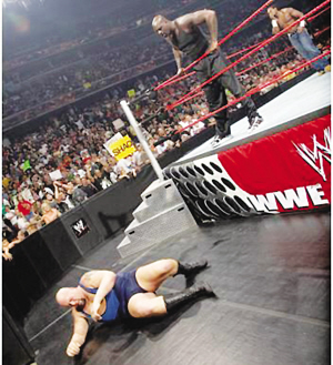 奧尼爾的摔角可能還會(huì)有續(xù)集。他并不是第一個(gè)走上職業(yè)摔角擂臺(tái)的球員,卡爾·馬龍和羅德曼曾經(jīng)在這里交手過(guò)。 (吳哥)