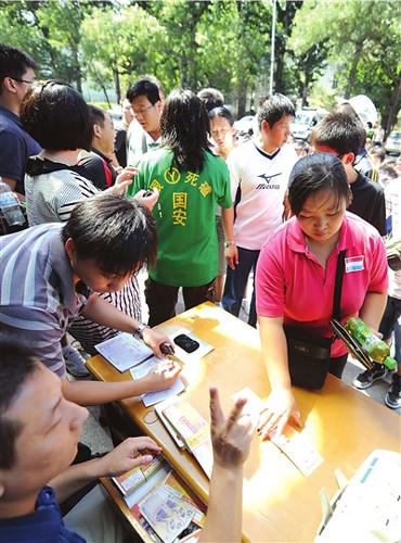 昨天上午10點多,300余名球迷涌入工體國安足球俱樂部,抗議在苦等數(shù)小時后仍買不到本月30日國安與魯能比賽的門票,指稱售票窗口與“黃!惫唇Y(jié),使得大量門票落入“黃!笔种。最終,為安撫球迷們的情緒,國安俱樂部破例追加售票。 >>現(xiàn)場球迷擠破暖氣片