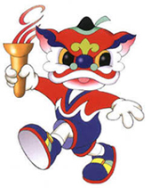 會徽:會徽中間豐滿,兩端漸細的曲線給人無限的延伸感,配合傾斜的線條,更顯奔騰飛躍之意。對比鮮明的紅、黃、藍三色,對視覺有強烈的沖擊力。造型灑脫地色勒出一個“9”,既直接傳達了九運會的信息,又宛如一位矯健、充滿活力、奮發(fā)向上的運動員,豪邁跨入新世紀。