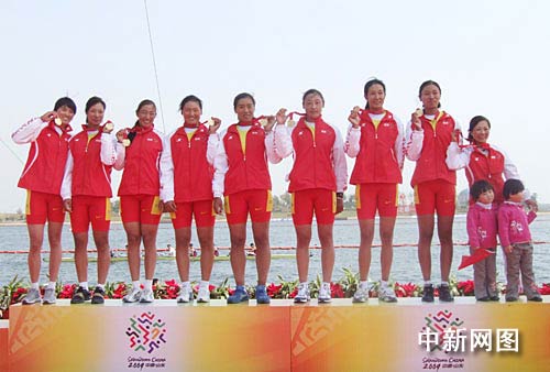 中新網(wǎng)日照10月20日電 (記者 林德強(qiáng) 黨正林) 在今天上午剛剛結(jié)束的女子2000米八人單槳有舵手比賽中,由奧運(yùn)會(huì)冠軍奚愛華領(lǐng)銜的山東隊(duì)奪得冠軍。為山東水軍再添一金。