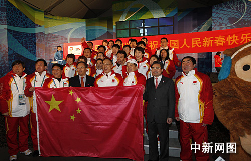 中新網(wǎng)溫哥華2月10日電 (記者 夏宇華 賴海隆)中國冬奧代表團今天在雨中舉行了升旗儀式,正式成為本屆冬奧會大家庭成員。升旗儀式后,中國代表團團長劉鵬帶領代表團成員展開橫幅高聲向全體國人送上新春祝福。
