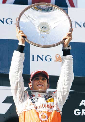 雖然事故頻發(fā),但邁凱輪車手漢密爾頓并未受到混亂形勢(shì)的影響,他駕駛著無(wú)TC(牽引力控制系統(tǒng))賽車順利登上了領(lǐng)獎(jiǎng)臺(tái)最高處。
