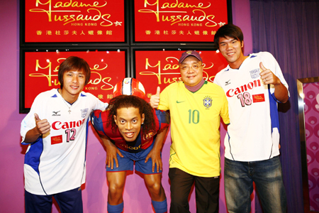 巴西世界級足球明星羅納爾迪尼奧近日加入香港杜莎夫人蠟像館的“體壇猛將”展區(qū)!爸醒肷纭眻D 陳幸嫚 攝