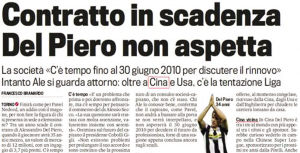 皮耶羅與尤文圖斯的合同到2010年6月30日到期,續(xù)約尤文圖斯固然好,但如果待遇方面不能得到滿足,那么也不排除皮耶羅尋找其他球隊養(yǎng)老的可能性。據(jù)《米蘭體育報》所說,包括中國、美國和西班牙的球隊都嘗試接觸皮耶羅,特別需要指出的是來自中超球隊的邀請。小新