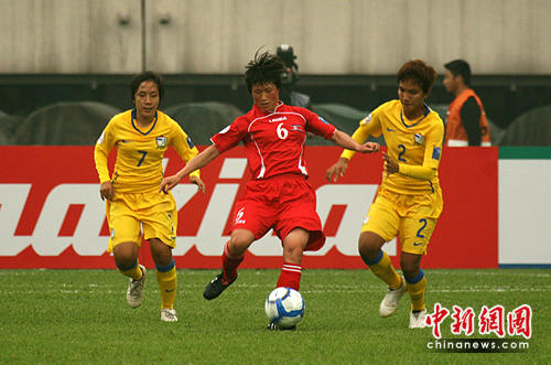 中新網(wǎng)成都5月20日電(記者劉忠俊 劉賢 楊杰)2010年女足亞洲杯A組比賽拉開戰(zhàn)幕,亞洲勁旅朝鮮女足迎戰(zhàn)泰國女足。開場4分鐘朝鮮隊連進2球,下半場再進一球,以3:0大勝泰國隊。