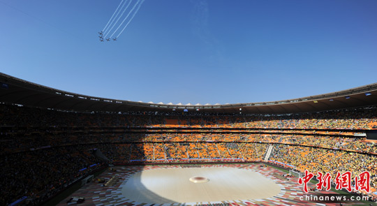中新網(wǎng)6月11日電 北京時間11日晚8時10分,南非世界杯足球賽開幕儀式在約翰內(nèi)斯堡的足球城體育場拉開帷幕。