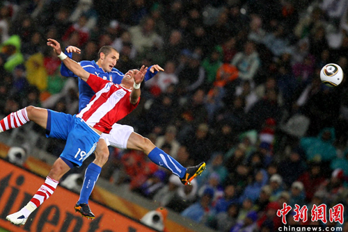 中新網(wǎng)6月15日電 在今天凌晨2:30進行的一場世界杯小組賽中,F(xiàn)組種子隊意大利隊迎來了與巴拉圭的首場比賽。經(jīng)過90分鐘激戰(zhàn),雙方憑借兩個定位球的機會,分別由阿爾卡拉茲和德羅西先后破門,最終戰(zhàn)成1-1平分秋色。