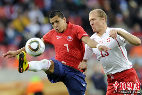 中新網(wǎng)6月21日電 北京時(shí)間今晚,世界杯H組第2輪首戰(zhàn)在伊麗莎白港納爾遜-曼德拉灣球場(chǎng)展開較量。瑞士中場(chǎng)貝赫拉米連續(xù)肘擊兩人,被紅牌罰下后,以十人應(yīng)戰(zhàn)的他們?cè)谙掳雸?chǎng)被智利隊(duì)岡薩雷斯打入一球,以0-1告負(fù)。
