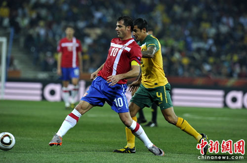 中新網(wǎng)6月24日電 今天凌晨,南非世界杯D組進行了最后一輪的較量。塞爾維亞在內(nèi)斯普雷特的姆伯貝拉體育場迎戰(zhàn)澳大利亞隊。雖然澳大利亞2-1擊敗塞爾維亞隊,但仍然因為凈勝球劣勢不敵加納,無緣小組出線。