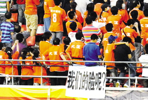 球迷無聲的抗議帶給魯能巨大的壓力,更大的尷尬在比賽結(jié)束后到來。0比0,魯能成為本輪中超惟一一支沒能在主場(chǎng)贏球的球隊(duì),這場(chǎng)平局讓他們把中超榜首位置讓給了北京國(guó)安隊(duì)。比賽結(jié)束后,賽場(chǎng)上的球迷出聲了,“下課……”