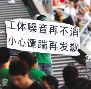 昨晚7點30分,2009賽季中超第14輪比賽全面打響,北京國安隊主場迎戰(zhàn)大連實德隊。盡管昨天并不是周末,但北京工人體育場上座率依然很高,球迷們打出了各種個性十足的標(biāo)語,如“工體噪音再不消 小心譚踹再發(fā)飆”,還有球迷身著“國安,跟丫死磕”的T恤衫到場為北京國安隊加油助威。另外,大連藍色激浪球迷也組織了聲勢浩大的助威團,專程從大連趕到北京為自己的球隊加油助威。