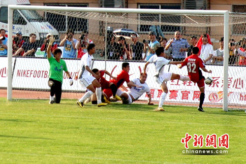 下半場(chǎng)易邊再戰(zhàn),雙方球員拼搶勢(shì)頭更加激烈。第67分鐘,南昌隊(duì)在禁區(qū)內(nèi)獲得點(diǎn)球機(jī)會(huì),門將程曉鵬主罰點(diǎn)球被撲出,焦鳳波接著補(bǔ)射再次被擋出,但隨后被回防的泰達(dá)隊(duì)佐里奇把球打在焦鳳波身上彈進(jìn)球門,裁判示意進(jìn)球有效。
