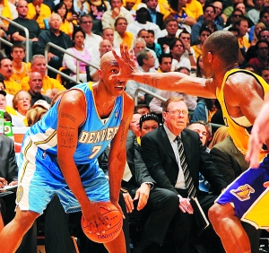 火箭雖然已經(jīng)出局,但巴蒂爾防守科比的遮臉絕技讓球迷津津樂道。對陣湖人,巴蒂爾的主要任務就是防守科比,在對抗中,不管科比是多么難以阻擋,巴蒂爾始終遵循著“一只手蓋在臉上”的防守法則。7場西部半決賽打下來,科比一定已經(jīng)記清了巴蒂爾掌心的每條紋路。伸手擋臉看似簡單,其實是個技術活,難就難在如何不碰到對手的臉。也許是受到巴蒂爾的啟發(fā),科比昨天在防守掘金后衛(wèi)比盧普斯時也用了遮臉這招,但科比的原地“發(fā)功”技術含量和巴蒂爾比起來還是遜色不少。巴蒂爾的做法是在快要發(fā)生身體接觸那一刻在空中轉體,右腿側伸,身體跟科比的身體略略交錯,從而保持手掌與對方面龐的距離,隨著對手投球完畢,巴蒂爾的手掌便收縮回來。這種動作難度很高,但效果不錯,不僅能擋住對手的投球路線,也能分散對方的注意力。