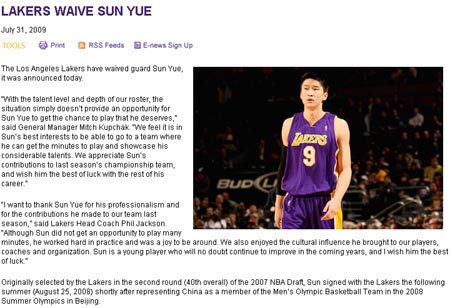 湖人宣布放棄孫悅 “中國(guó)太陽(yáng)”NBA之路將向何方