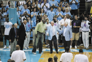 這里是北卡羅來(lái)納大學(xué)籃球隊(duì)成立100周年的慶祝比賽現(xiàn)場(chǎng),“在美國(guó)不可能有第二個(gè)地方能舉行今晚這樣的盛典!盢BA老鷹隊(duì)球星馬文·威廉姆斯說(shuō)。
