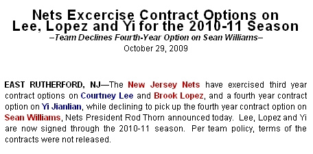 籃網(wǎng)此次執(zhí)行的是易建聯(lián)的第四年合同選項(xiàng),因?yàn)榘⒙?lián)與雄鹿簽訂了2+2的新秀合約,即前兩年的固定保障加兩年合同選項(xiàng)。所以易建聯(lián)至少會為網(wǎng)隊(duì)效力到2010-11賽季結(jié)束!